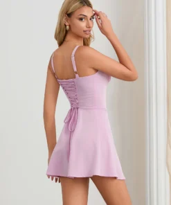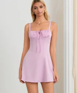 Women Summer Sling Dress Solid Color Sleeveless Tie-Up Corset Fishbone A-line Dress French Retro Sexy Elegant Dresses