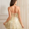 Women Shiny Sequins Dress Summer Backless A-Line Mini Party Dress for Cocktail Beach Streetwear