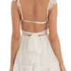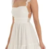 Women Summer Casual Mini Dress Swiss Dot Fly Sleeve Tie-Up Backless Dress Beach Holiday Party Short Dress